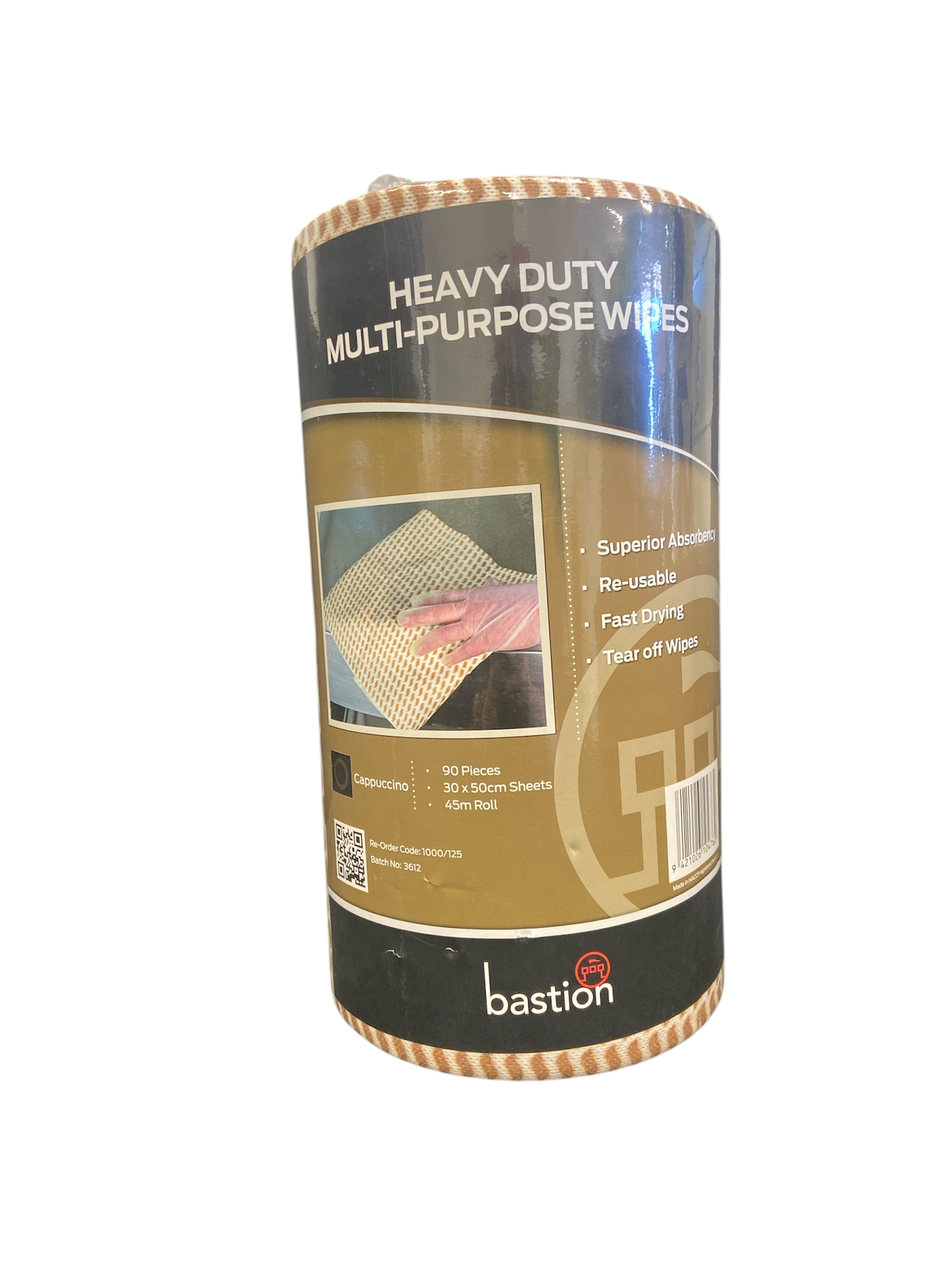 300mm x 500mm | 90 Sheet Bastion Heavy Duty wipes roll-Cappuccino | 4roll/carton