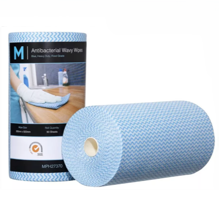 300mmx500mm 90 Sheets 80gsm Antibacterial Wavy Wipes Blue (price per roll)